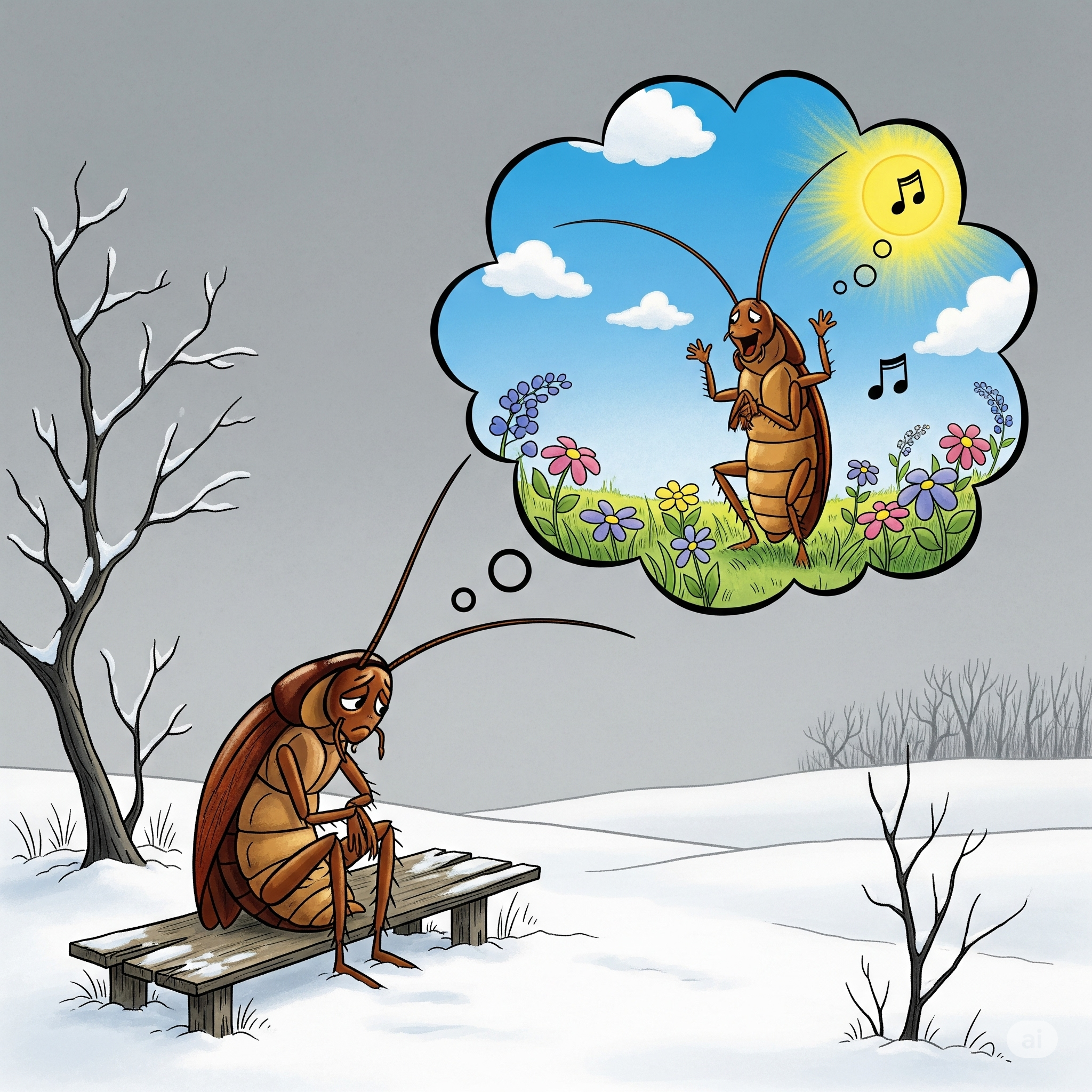 الصرصور، بعد أن قضى الصيف كله في الغناء،
